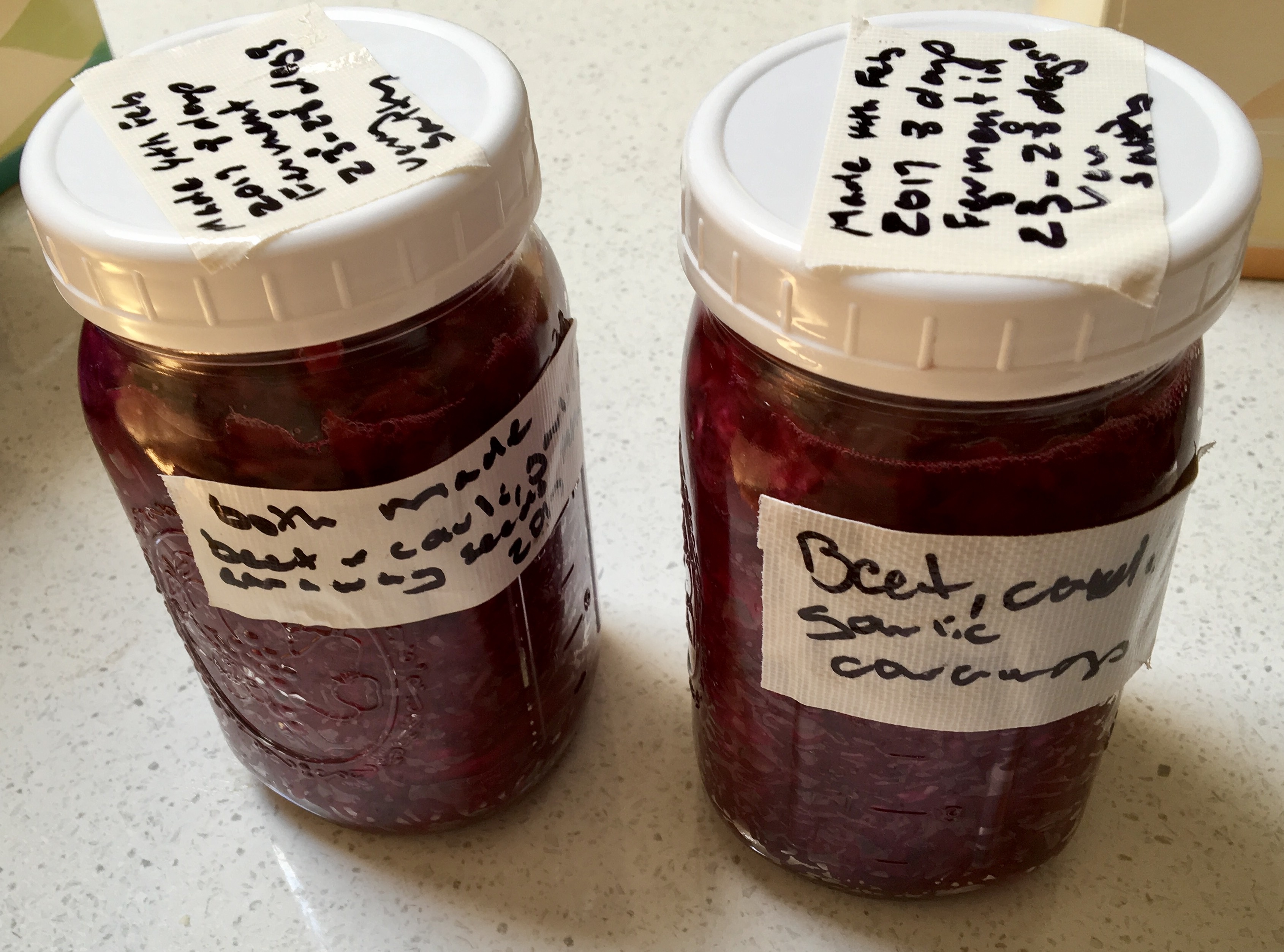 I processed beets, carrot and cabbage; along with all the other ingredients that this recipe calls for and placed both jars of sauerkraut in my kitchen pantry; just yesterday.